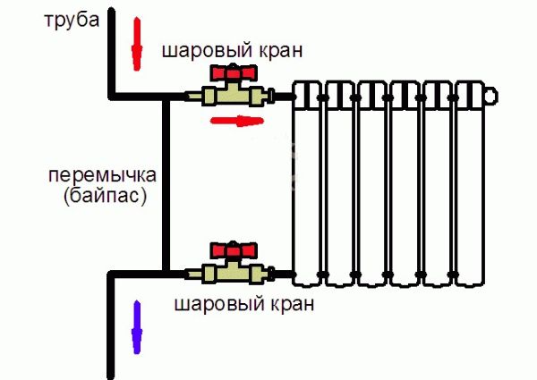 Для перекрытия отопительного прибора необходимо наличие шаровых кранов
