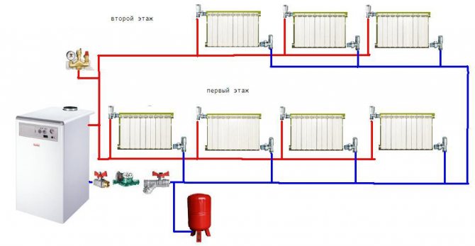 - В нижней точке находится запорный кран, с помощью которого происходит подача холодного теплоносителя в контур.