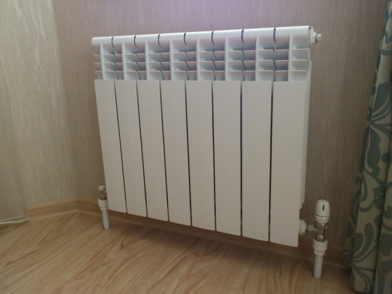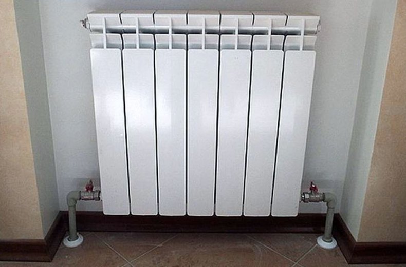 Если использовать радиаторы с нижним подключением, появляется возможность почти полностью спрятать все трубы в полах – подключение радиаторов выполняется здесь с помощью специальных узлов.