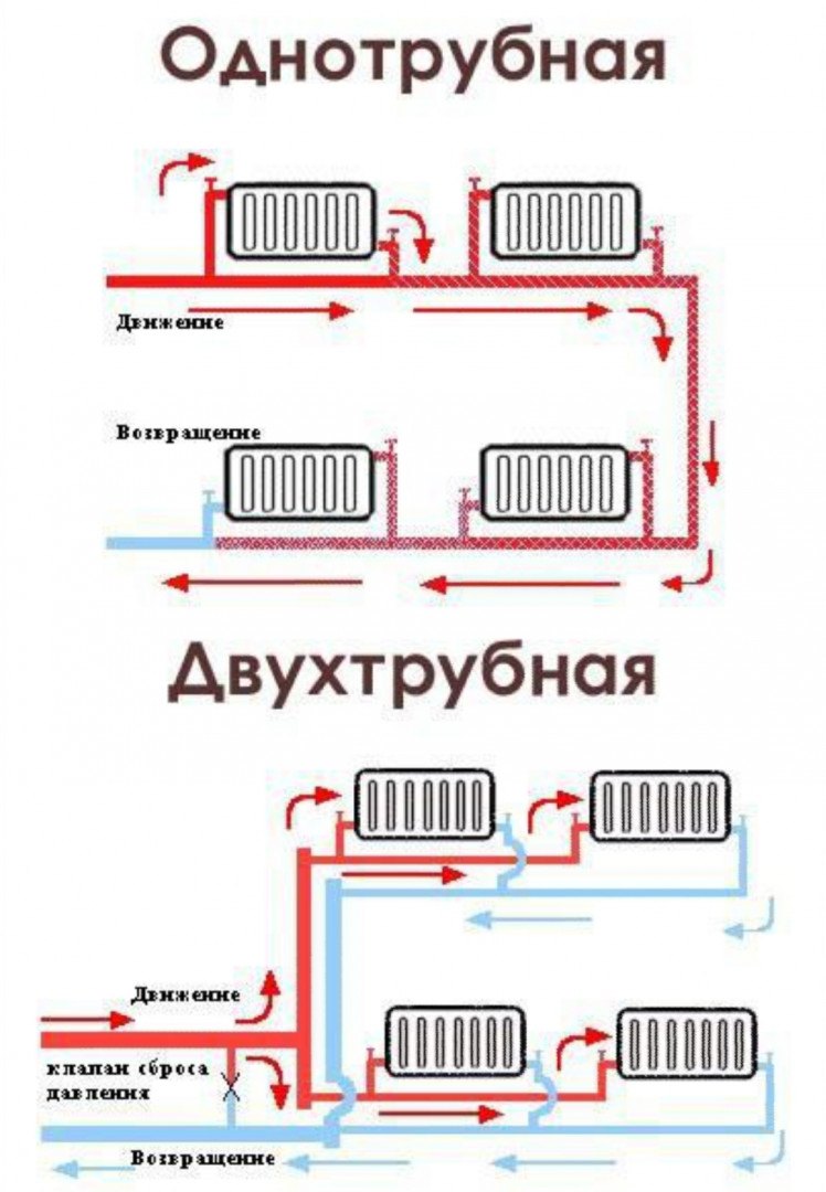 Двухтрубная система отопления состоит из подающей и обратной труб. Между ними устанавливаются радиаторы – вход радиатора подключается к подающей трубе, а выход – к обратной. Что это дает?