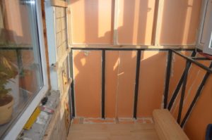 Далее идет процесс заливки пола. Устанавливаем маяки, берем сухую цементную смесь (стяжку) разводим в воде и уже по заранее выставленным маякам заливаем пол. После высыхания переходим к финальному этапу отделки лоджии. А финалом будет установка обрешетки (из дерева или из металлических направляющих) с помощью шуруповерта и саморезов. И сама обшивка лоджии выбранным отделочным материалом (вагонка, сайдинг, гипсокартон, обои).