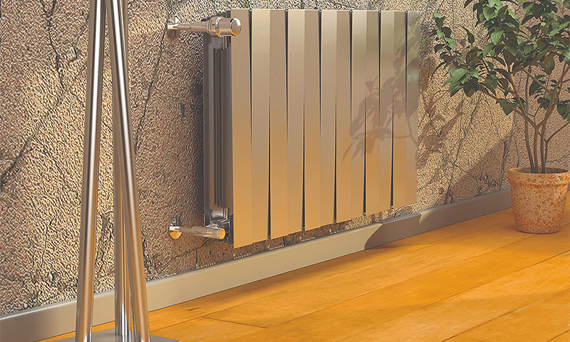 - биметаллические – медно-алюминиевые конвекторы, которые в отличии от медных конвекторов имеют вертикальные алюминиевые пластины, соединенные с легким алюминиевым корпусом. Внешне они похожи на плоские стальные радиаторы. В этих приборах исключен контакт алюминия и теплоносителя, что делает их устойчивыми к коррозии. При этом конвекция воздуха увеличивается за счет большей (в сравнении с медными конвекторами) площади пластин.