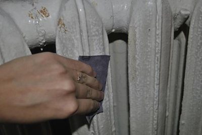 Чтобы убрать старую краску, нужно зачистить батарею с помощью наждачной бумагой либо обработать, согласно инструкции, специализированными размягчающими составами и удалить, используя шпатель.